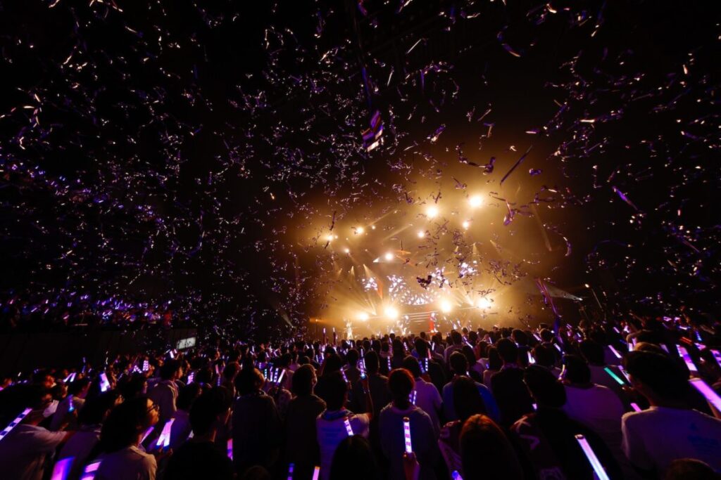 続いて披露されたのは、YOASOBIのカバー「群青」。この曲は『千鳥の鬼レンチャン』に出演した際に、女性アイドル初となる鬼レンチャンを達成したファンにとっても思い入れのある楽曲。そして「錆つかない剣を持て!」で会場の盛り上がりは最高潮になり、最後に「川は流れる」を歌い上げ、本編は終了。