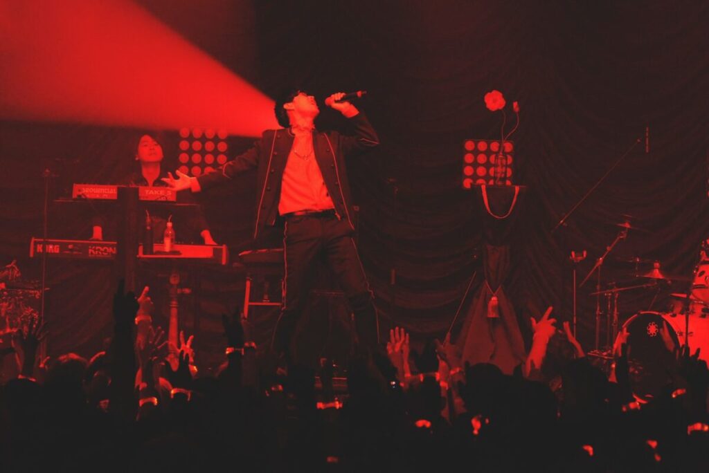 ソールドアウトできるとは思っていなかった初めてのZepp公演。会場いっぱいのオーディエンスへ礼を述べるKIHOW。アーティストとして単独でZeppに立つのは初めてだと語るTom-H@ckが“ここからの景色、最高です!”と高らかな声を上げると、会場は大きな歓声に包まれた。KIHOWはツアータイトル“Loved all long”について、“ずっと愛されてきた”という意味を込めたといい、みんなのおかげで迎えることができる10周年に対し、“ライブでみんなに感謝の気持ちを返したい”という気持ちを込めて「追想輪廻」を丁寧に届けた。そして、ピアノの美しい調べから「STYX HELIX」へと流れていく。幻想的な灯りに照らされたステージで儚さと凛とした強さ、無機質感と温かさが錯綜する幽玄な世界を創り出した。