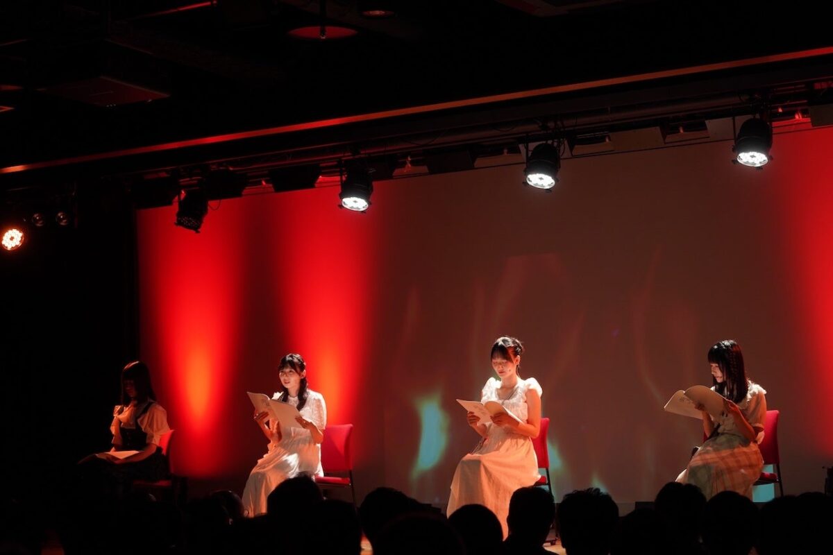 STU48個人ファンクラブ主催によるオリジナル朗読劇『炎夏の花』が、7月18日(金)に広島・エディオン紙屋町ホールにて開催。尾崎世里花・信濃宙花・高雄さやか・原田清花の4名が出演した。