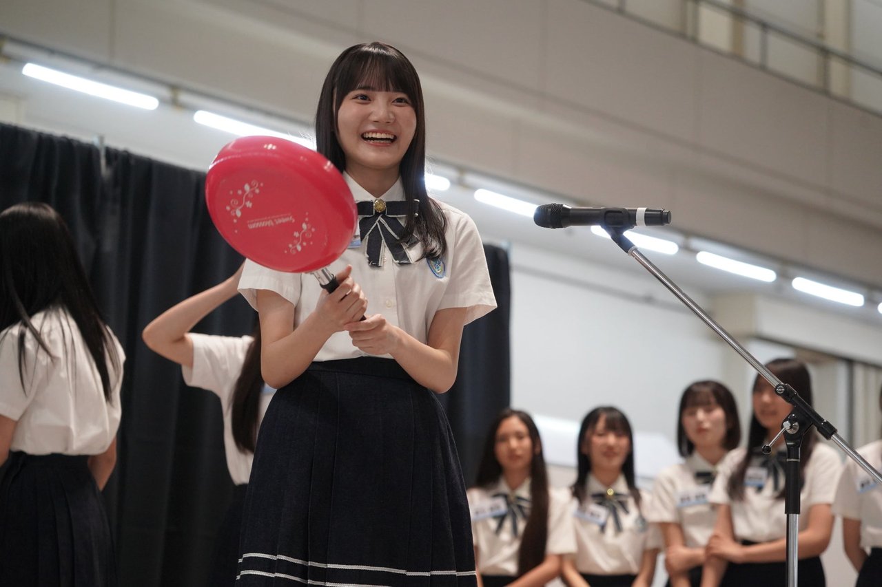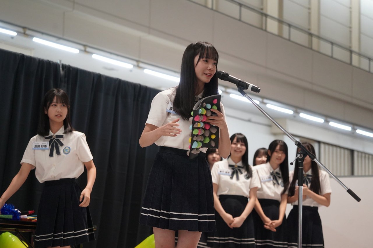 ミニステージでは、『アピールタイムをかけた大勝負!4期研究生チーム対抗・京都 秋の陣』と題し、6人ずつ3チームに分かれてゲーム企画を実施。『心を一つに!ポーズ合わせゲーム』では、掛け声に合わせて同じポーズが揃えば成功となりTチームが息の合ったポーズで団結力をアピールし、続く『答えて当然?常識クイズ』では、坂木叶愛が“世界三大珍味”の1つを聞かれ、“カルビ”と答えるなど思わず笑ってしまう珍回答を披露。また、アメリカの首都を尋ねられた髙村栞里の“カルホルニア”という意外な解答も飛び出し、会場は驚きと笑いに包まれた。