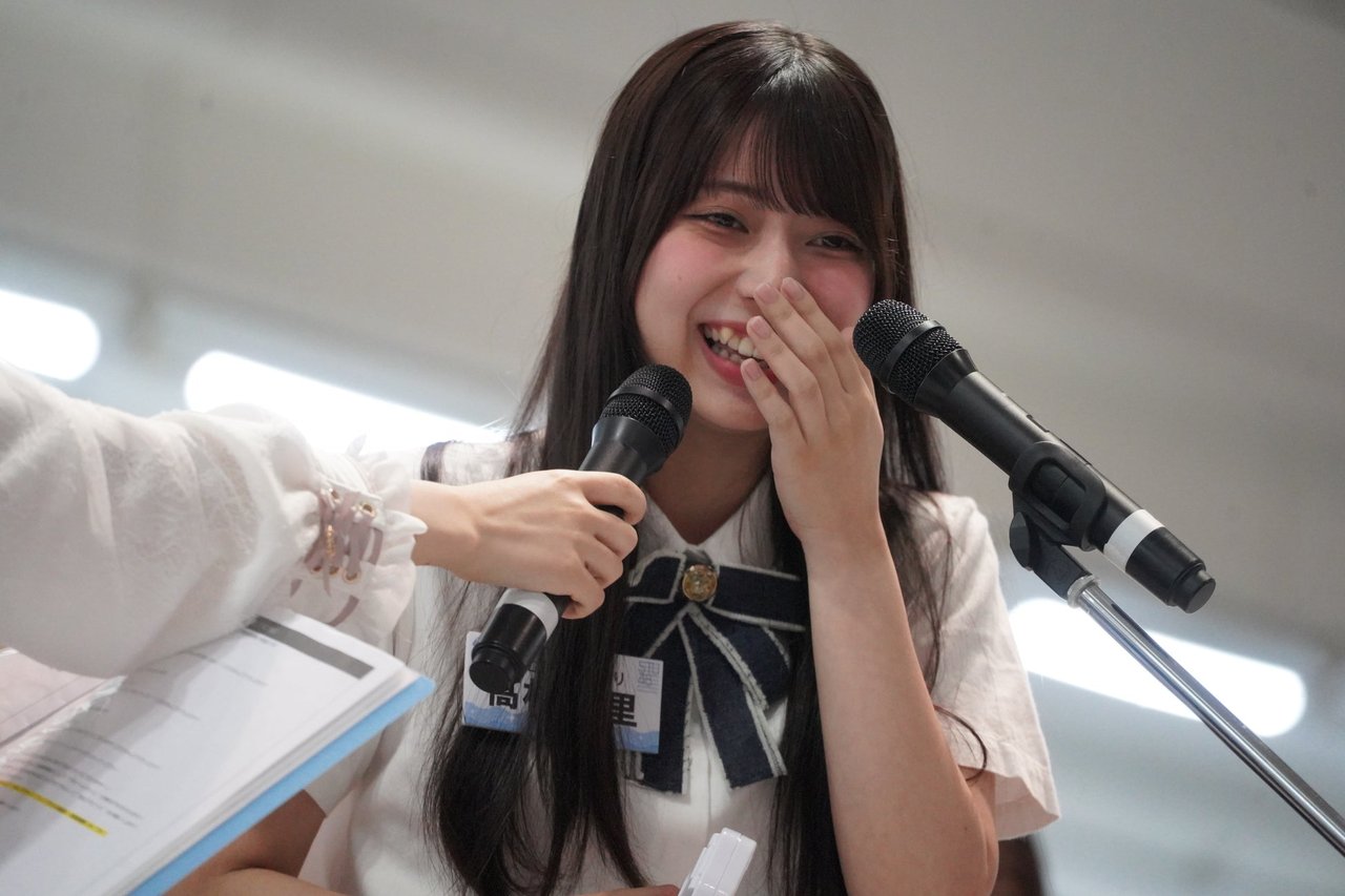 初めての握手会で、どうしたらいいかわからないけど、応援してくださっている方々と直接お会いできることがとにかく嬉しいです! 私をよく知らない方もいらっしゃるので、私の魅力をたくさんふりまきたいなと思います!