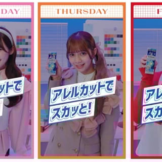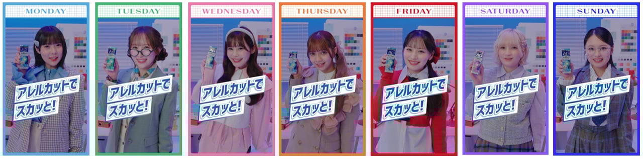 2月6日(金)より、第一三共ヘルスケアの「エージーアレルカットⓇ」ブランドサイト(https://www.daiichisankyo-hc.co.jp/site_ag/)では、日替わりでメンバーが出演する縦型ショートムービーも公開。本コンテンツでは、曜日ごとに異なるメンバーが登場し、アレルギー症状による不快感を抱える視聴者に向けて、前向きで明るいメッセージを届ける。日常のワンシーンに寄り添うコメントを通じて、「エージーアレルカットⓇ」がもたらす爽快なイメージを、より身近に感じれる内容となっている。毎日異なるメンバーの表情やセリフを楽しめる点も見どころの1つだ。