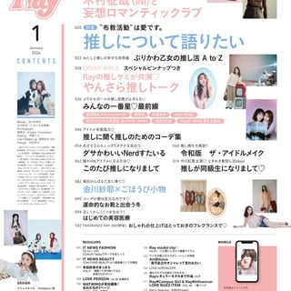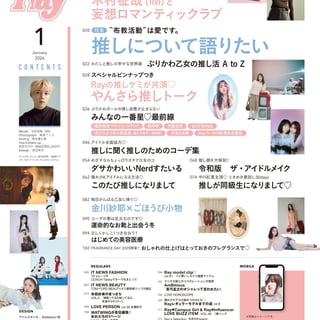今号の大特集は「“布教活動”は愛です。推しについて語りたい」。Rayモデルや読者の推し活事情から、アイドル全面協力のもと実現した「推しに聞く推しのためのコーデ集」など、オシャレも推し活も全力で楽しみたいぷりかわ乙女に向けた情報をたっぷりとお届けする。「みんなの一番星♡最前線」企画では、Ray専属モデルの櫻井優衣(FRUITS ZIPPER)をはじめ、南琴奈、村重杏奈、WATWING、超ときめき♡宣伝部の小泉遥香&吉川ひより、末吉9太郎が、推している人やモノを布教。