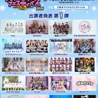 7月25日(土)、26日(日)に開催される、テレビ朝日主催のアイドルイベント<10年目記念で有明に引っ越しだよ!六本木アイドルフェスティバル2026>の第1弾出演者が発表された。