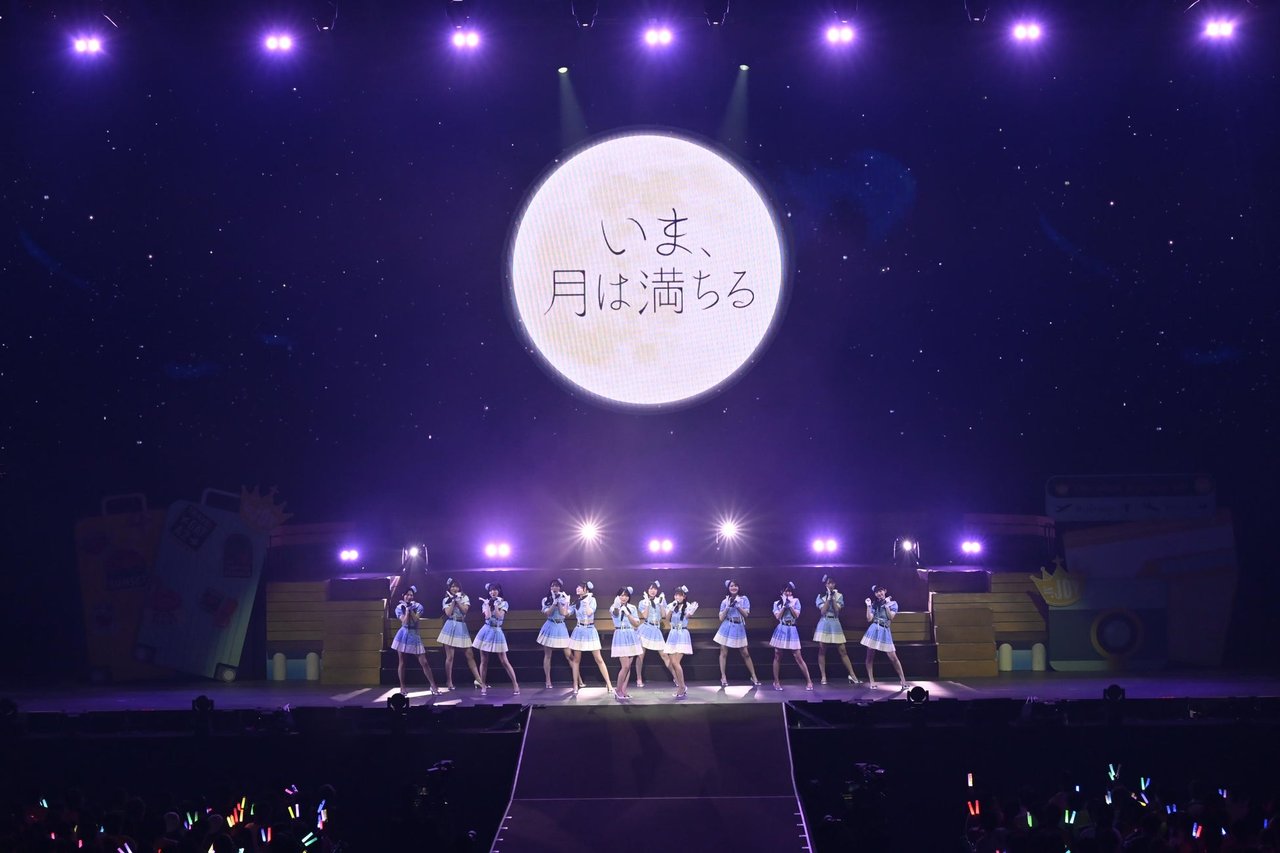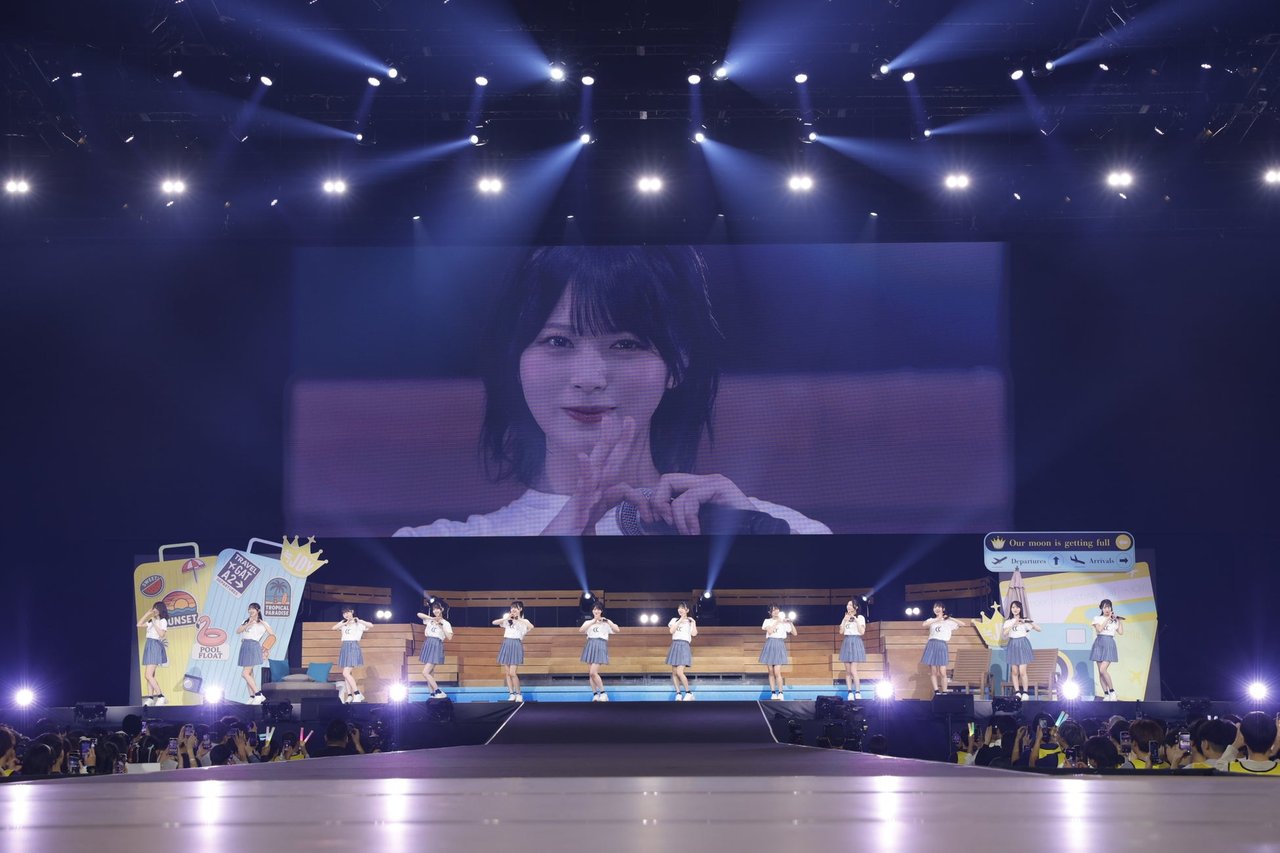 今回のツアーではメンバーがキャビンアテンダントに扮し、空の旅をイメージした世界観の中でライブが進行した。CA風の衣装を身にまとってステージに登場した≒JOYは、ツアーのテーマソング「いま、月は満ちる」で勢いよくライブをスタートさせる。「いま、月は満ちる」は≒JOYのプロデューサーである指原莉乃が、過去に書いた楽曲のカバー。観客による息の合ったコールも相まって、開演早々に大きな盛り上がりが生まれた。「スイートシックスティーン」ではメンバーがセンターステージからサインボールを投げたり、トロッコに乗って笑顔を振りまいたりと、ファンサービスにあふれるパフォーマンスをくり広げた。