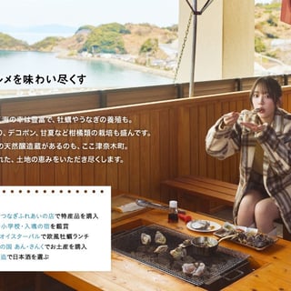 女優、モデルとして活躍し、バラエティ番組でも存在感を放つ堀未央奈。年10回は旅に出る旅好きとしても知られている。旅先ではお土産を選ぶのも楽しみの1つで、津奈木町でもブランド玉ねぎのドレッシングや日本酒、柑橘のお菓子などをたくさん購入。お酒好きの堀は、訪れた『亀萬酒造』でも真剣に試飲し、日本酒を選ぶ姿が印象的だったという。美味しい食事や自然、洗練された空間の宿、アートも楽しめる津奈木町については“町全体に上品な居心地の良さを感じました”とコメント。思い切り食べて飲み、全力で旅を満喫する堀さんの様子を追いながら話を聞いた。