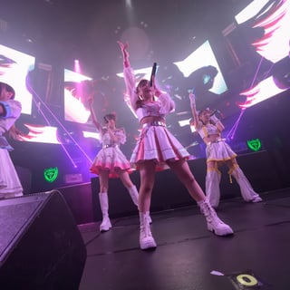 期待が高まる中で「TOKYO」からラストスパートに突入。東京の夜を感じさせる壮大なテクノサウンドの中、再びメンバーとファンとのコール&クラップで一体感が高まると、「圧倒的アイドルの極み」へ。煽りがキャッチーなこの曲でフロアと一緒のジャンプも交え、ツアーを締めくくった。