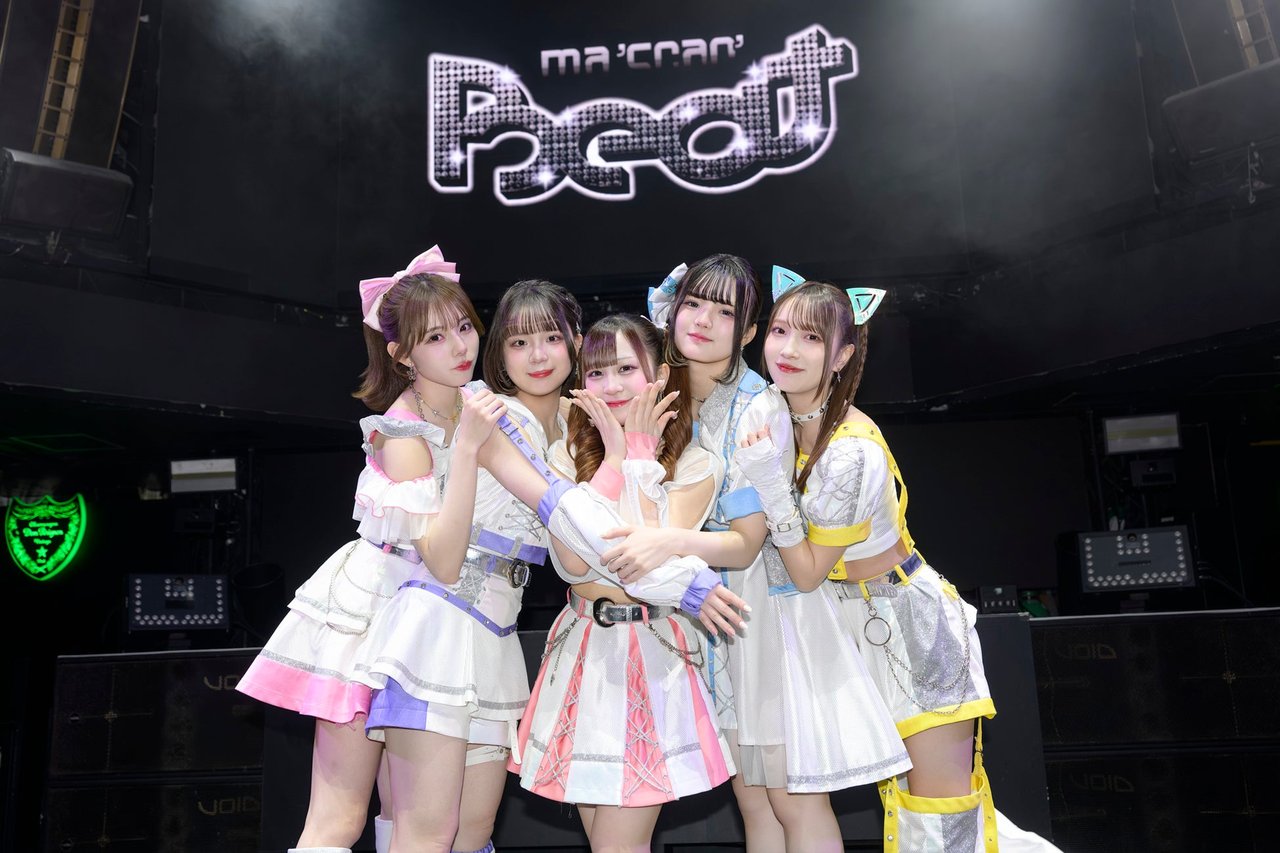 Ma’Scar’Pieceは、バンダイナムコエンターテインメントが送る音楽原作キャラクタープロジェクト『電音部』シモキタザワエリアのユニットとして立ち上がった。電音部のキャラクターを演じながら、アイドルとしても活動を続ける2次元と3次元が融合したグループ。甘崎結依梨:明前魅音、咲間なぎ:松蔭聖那、多々良ゆら:駒場伶音、大森莉緒:笹塚舞歌、山本愛梨:三軒神楽の配役でキャラクターを演じ、歌ってきた。昨年は大森が“奇跡の1枚”でSNSでバズりを叩き出し、アイドルフェスにも多数参戦して足跡を刻んだ。初の全国クラブツアーは昨年11月の大阪公演を皮切りに、全国5都市で開催、メンバー5人全員でツアーを完走した。