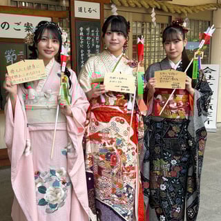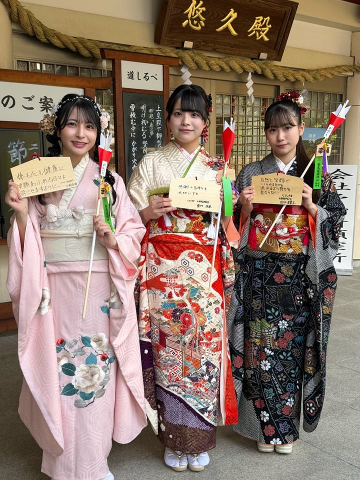 それぞれが自ら選んだ華やかな振袖に身を包み、凛とした姿で神殿に入った6名。20歳という人生の節目を迎えた自覚と喜びが表情から伝わり、会場は厳かさの中にも華やかな空気に包まれた。少し緊張した面持ちで御祈祷を受け、成人奉告の儀に臨んだ。儀式を終えたメンバーたちは清々しい表情で取材に応じ、それぞれが新たな決意を語った。
