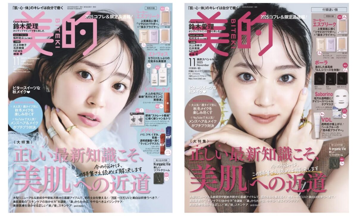 鈴木愛理が、9月22日(月)発売の『美的』11月号の表紙(通常版&付録違い版)に初登場する。