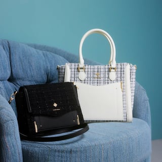 ショルダーバッグとボストンバッグの2型。ショルダーバッグは、持ち手を伸ばしてワンハンドルでも使用可能。ショルダー部分のゴールドチェーンがより女性らしさを引き立てる。
