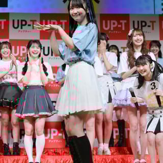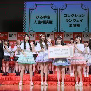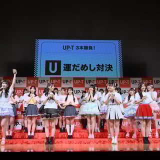 その後、優勝グループに「ひろゆき人生相談権」と「コレクションランウェイ出演権」が贈られるチーム対抗企画『UP-T 3本勝負』を実施。第1試合の運試し対決では、激苦のセンブリ茶を引き当てたメンバーが苦悶の表情を見せ、会場を盛り上げた。