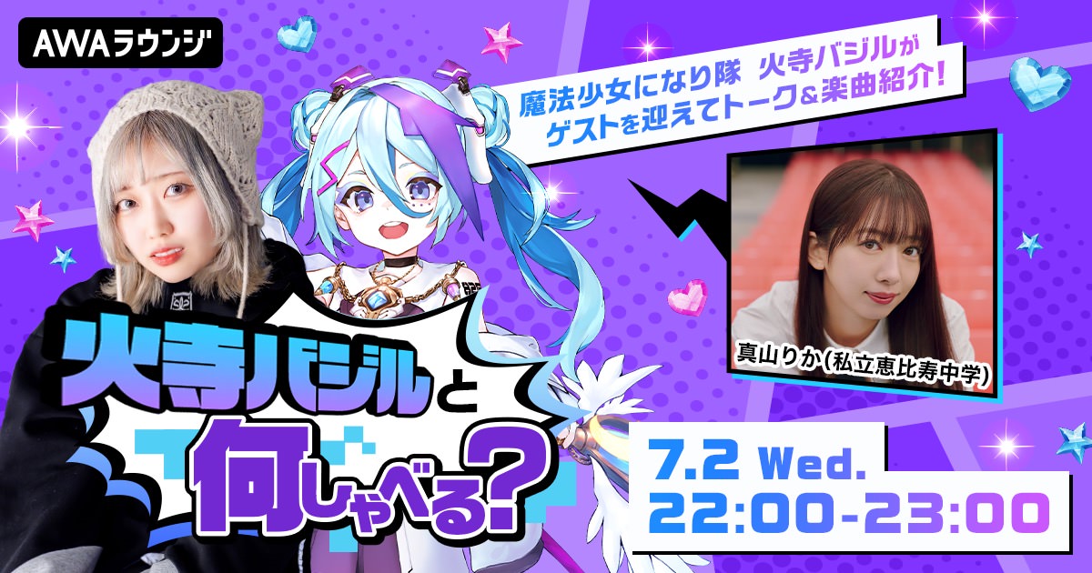 サブスクリプション型(定額制)音楽ストリーミングサービス『AWA(アワ)』が、7月2日(水)22:00~23:00に、無料で誰でも参加できるオンライン空間「AWAラウンジ」で、ロックバンド・魔法少女になり隊の火寺バジルがMCを務める新番組『火寺バジルと何しゃべる?』の第1回を開催する。