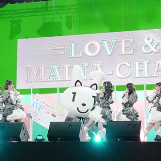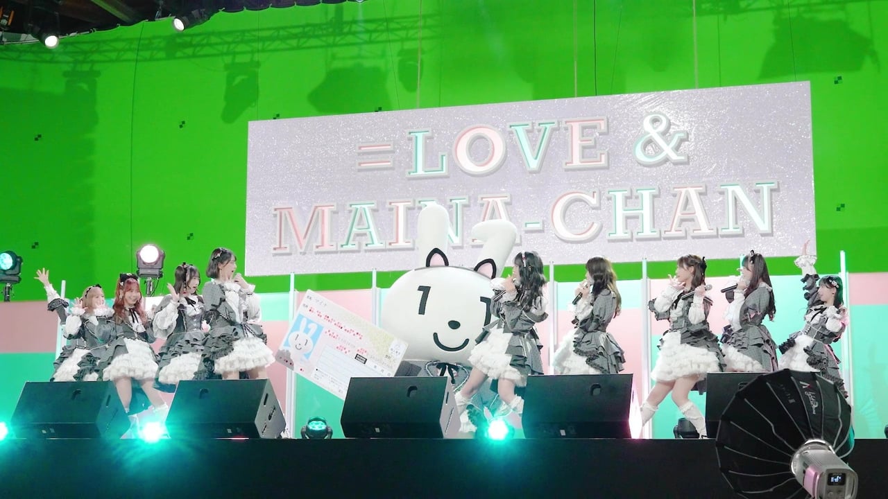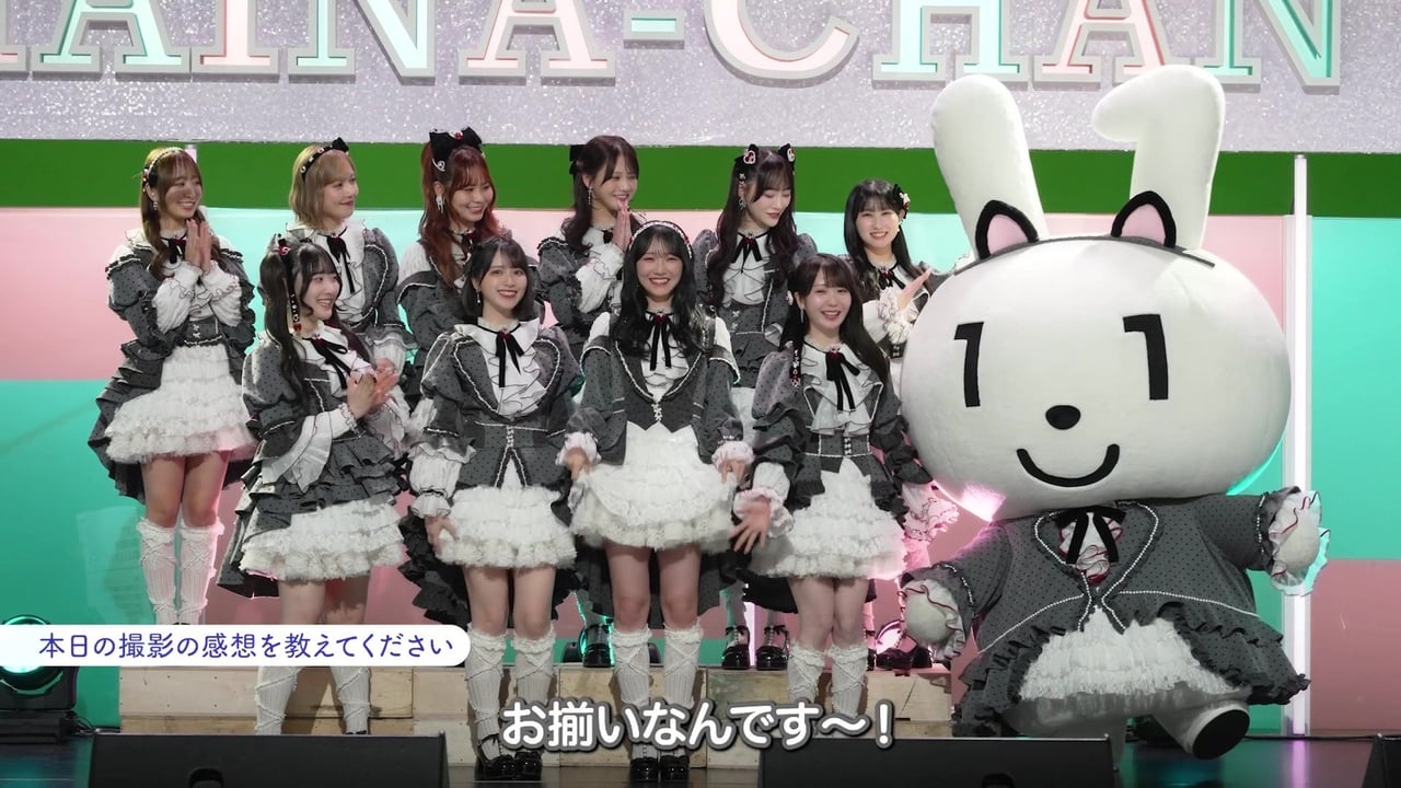 佐々木舞香 こういう本当のライブ会場みたいなセットで、CMオリジナルソングを歌わせてもらって。そしてマイナちゃんの衣装が、私たちとお揃いなんです! 動くたびにね、フワフワしてて可愛いです、マイナちゃん。