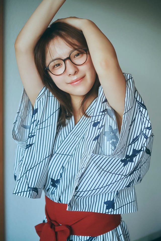 優しく微笑む健康美あふれる水色、オトナの色気漂う黒のランジェリーと、それぞれ異なる魅力を放つカットや、早朝に撮影した浴衣に眼鏡姿の“寝起き”感のあるナチュラルな姿も。また撮影には自身のカメラも持参し、空いた時間に撮影も。写真集のどこかに大塚の撮影したカットも使われる予定だ。今回の撮影に際し、自身も積極的にアイディアを出して取り組んだ、まさに大塚の気持ちが詰まった1冊となっている。