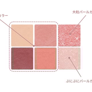 色数が多すぎると使いこなせない、少なすぎるとメイクがマンネリになりがち、そうしたちょっとしたお悩みに応えるべく6色構成を採用。きらめくシマーカラーのほか、存在感のある大粒パールカラーとぷにぷにとした新感覚テクスチャーでハイライトにも使える繊細パールカラーをセットすることで、きらめきの異なるパールが目元に立体感と輝きをプラスしてくれる。1つのパレットに華やかなカラーから締め色で使えるブラウン系まで揃っているので、デイリーメイクから特別な日のメイクまで色々なアイルックを楽しめるのが魅力。ポーチに入るコンパクトなサイズ感は、お出かけや旅行先にも気軽に持ち運べる。新しい色や組み合わせに思わずトライしたくなる6色パレットで、まばたきするたびにときめきを感じさせる“パールコア”なアイメイクを楽しみたい。