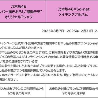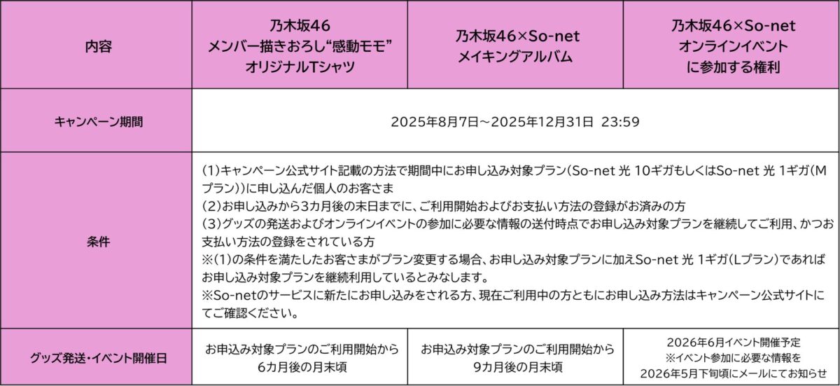 コラボキャンペーン対象プランの申し込みと継続利用で、乃木坂46の限定グッズやオンラインイベントに参加する権利をプレゼントするコラボキャンペーンを開催。