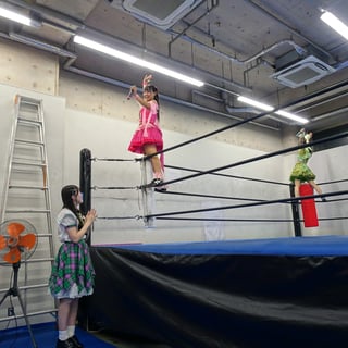 続いて山根が未詩のレクチャーとアシストを得てコーナーに上がってポーズを取りながら“お父さんに(写真)送ります。喜びます、お父さん”。さらに“めちゃめちゃ高いですね”と感想を述べてからリングを下りる。