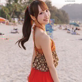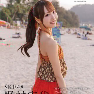 先行カットでは、ペンライトカラーである赤のランジェリーのバックショットや、赤いスカート姿、バラを手に持った黒のランジェリー姿、美しい谷間がちらりと覗く水色の水着、真っ白なワンピースでパトンビーチを歩く姿、そして、写真集のために野村が好きなデザインを発注して特別に作ったピンクのアイドル衣装などを公開。