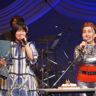 続いて、ゲストのキンタロー。が“トゥームレイダーのアンジェリーナ・ジョリー”姿で花束を手に登場。“池ちゃん、22歳のお誕生日おめでとうございます”と祝福した。2人は、初めて一緒にビールを飲んだ池田の20歳当時の思い出や『千鳥の鬼レンチャン』でのエピソード、同じ身長152センチで“基本根暗”という共通点などを語り合い、会場は笑いに包まれた。続く“池キンタッグ”によるデュエットでは、「学園天国」を皮切りに、番組で挑戦した楽曲を含む3曲を個性豊かに披露した。