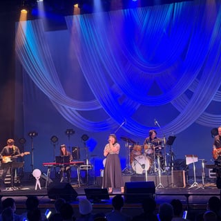 1部の感動冷めやらぬ中で始まった2部では、客入れBGMから細部までこだわった演出が光り、徳永ゆうきとのデュエット曲「あの頃のBGM」や和田アキ子の「やじろべえ」など、池田ならではの選曲で“池田ワールド”へと観客を誘った。