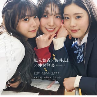 一方、裏表紙を飾るのは私立恵比寿中学の風見和香&桜井えま&仲村悠菜。裏表紙には、仲良し同級生トリオで顔を寄せ合うカットを採用。彼女たち3人と同じ教室で学校生活を過ごしていたかのような気持ちにさせる裏表紙に仕上がった。