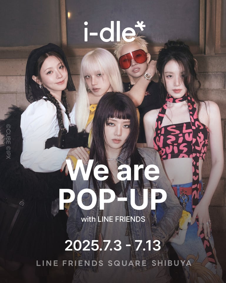 i-dleの8thミニアルバム『We Are』のリリースを記念して、7月3日(木)〜7月13日(日)にLINE FRIENDS SQUARE SHIBUYAの地下1階にてポップアップが開催される。
