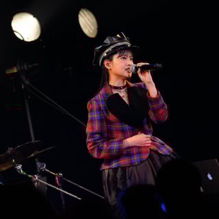 28日の公演は、『大西亜玖璃 3rd LIVE Rock&Roll Lady LIVE』。1stライブぶりの生バンド編成で、コンセプトミニアルバム『Rock&Roll Lady Girl』の世界を表現していく。衣装はポリスハットにチェック柄のジャケット。黒い大きな襟がハートに見えるのもクールで可愛らしい。まずは、TVアニメ『スライム倒して300年、知らないうちにレベルMAXになってました ~そのに~』のEDテーマ「イニミニマニモ」をぶちかまし、「NTMUエイリアン」へと繋げていく。前の2公演ともガラッと雰囲気が変わったライブ。彼女の楽曲にはアイドルソングやポップソングだけでなく、ロック調の楽曲も多いので、生バンドとの相性は抜群だった。