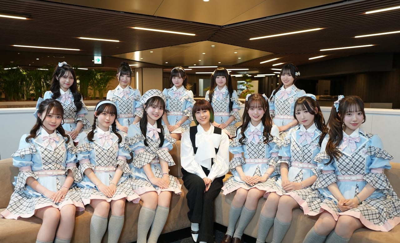 その後、オーディションから今日までの歩みを振り返る秘蔵映像が流れ、映像が明けると、初公開となる衣装に着替えたメンバーたちの姿が。MCのIMALUも“めっちゃ可愛い!”とコメントした、青春を象徴するような、爽やかな水色とピンクを基調とした制服風のデザインを、メンバーが晴れやかな笑顔とともに紹介した。