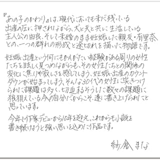 同書は、デビュー小説『最低。』(KADOKAWA刊)の刊行からちょうど10年を迎える記念すべきこの日、これまでの執筆活動を経てたどり着いた新境地、“妊娠・出産”への葛藤を描いた、紗倉まな超渾身の一作。