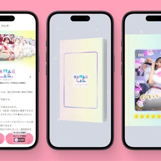 KAWAII LAB.パックでは、総勢7グループの全メンバーが登場。毎日1回無料でカードパックを引くことができ、気軽にコレクションを始めることができる。