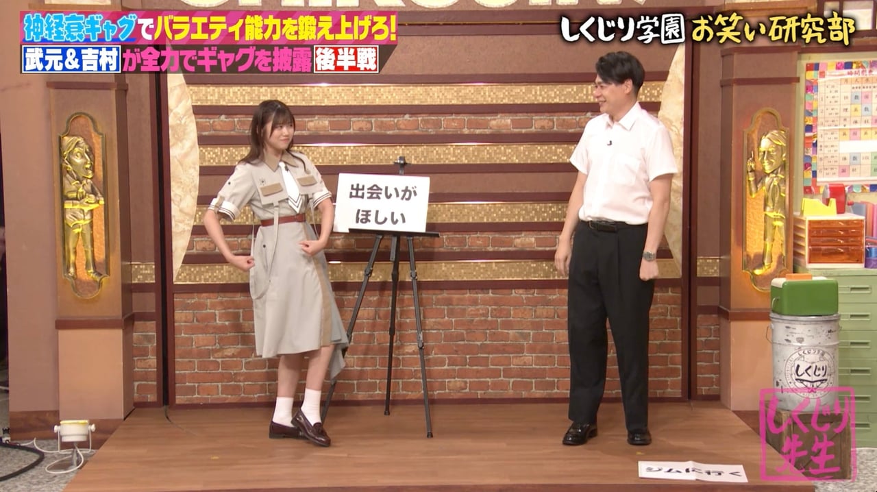 “神経衰ギャグ”は、芸人の顔と名前を一致させる神経衰弱風のゲームで、正解すると指名した相手が該当芸人のギャグを全力で披露するルール。櫻坂46の4人は、しくじり学園“お笑い研究部”のメンバー、お笑いコンビ・オードリーの若林正恭、平成ノブシコブシの吉村崇、ハライチの澤部佑、アルコ&ピースとペアを組み、前回決まった山﨑×若林、武元×吉村、井上×澤部、大園×アルコ&ピースという組み合わせでゲームに挑戦した。