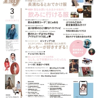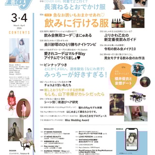 今号の大特集は「飲みに行ける服」。まだまだ飲み会が続くシーズンだからこそ、毎回悩みがちな飲みに行く時の服を大特集。頑張りすぎていないけどちゃんと可愛い、相手とシチュエーションに合わせた正解コーディネートやヘア&メイク、さらにおすすめの夜飲みスポットも沿線別に紹介。