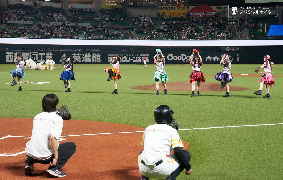 みずほPayPayドーム福岡で行われた冠協賛試合<アイドル髪もクレイツ presents スペシャルナイター2026>では、スペシャルゲストとしてCANDY TUNEを招き、地元福岡を盛り上げ、福岡ソフトバンクホークスと来場者を応援した。