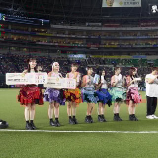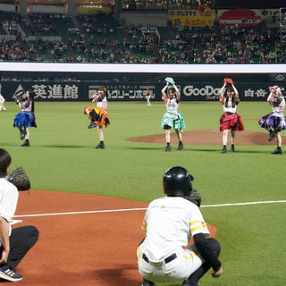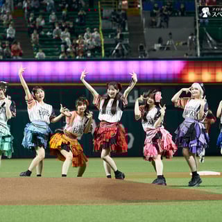 試合前に行われた始球式では、CANDY TUNEのメンバー7人がマウンドの前で一列に並び、大きく振りかぶって一斉に投球。惜しくもワンバウンドとなる場面もあったが、それぞれのメンバーがキャッチャーめがけてボールを投げ込み、大歓声を浴びた。