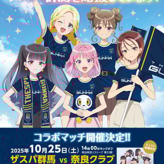 ザスパ群馬が、10月25日(土)に正田醤油スタジアム群馬で開催する明治安田J3リーグ第33節奈良クラブ戦にて前橋市を舞台とするTVアニメ『前橋ウィッチーズ』とのコラボレーションが決定したことを発表した。