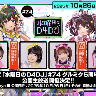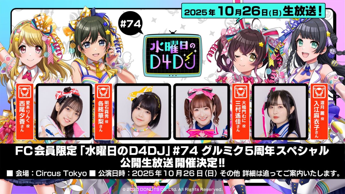 ライブの最後には、スマ-トフォン向けリズムゲーム「D4DJ Groovy Mix」(以下、グルミク)5周年を記念した『D4DJ Official FAN CLUBイベント』の開催や、ライブ中にサプライズ披露した新曲のゲーム内実装などの情報を解禁した。