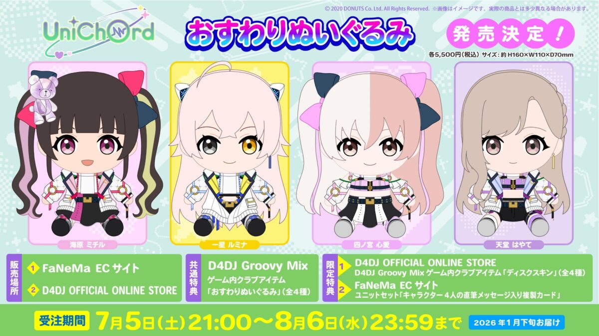UniChØrdのメンバーのおすわりぬいぐるみが発売決定。