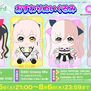 また、FaNeMaおよびD4DJ公式オンラインストア共通特典として、ゲーム内クラブアイテム「ディスクスキン」(全4種)が付属される。