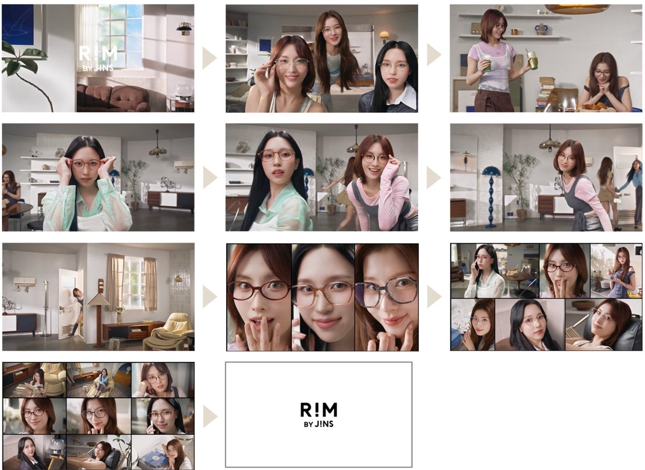 コンセプトフィルム「RIM loves MISAMO 今日のアイウエア、どれにする?」は、お出かけ前の慌ただしい朝の身支度の時間に、MISAMOの3人がファッションや髪型に合わせてアイウエアをかけかえ、顔まわりの印象がパッと変わる瞬間や、気分が上がった表情を捉えている。スタイリングは、色のレイヤードや異素材ミックスなどをテーマに三者三様の着こなしに。40秒程度の切れ目ない動画の中で、3人それぞれが3つのアイウエアと3つのスタイリングに、目まぐるしく変化していく様子が楽しめる。着用商品やスタイリングは特設サイト(https://rim.jins.com/jp/lp/misamo26ss/)にて。