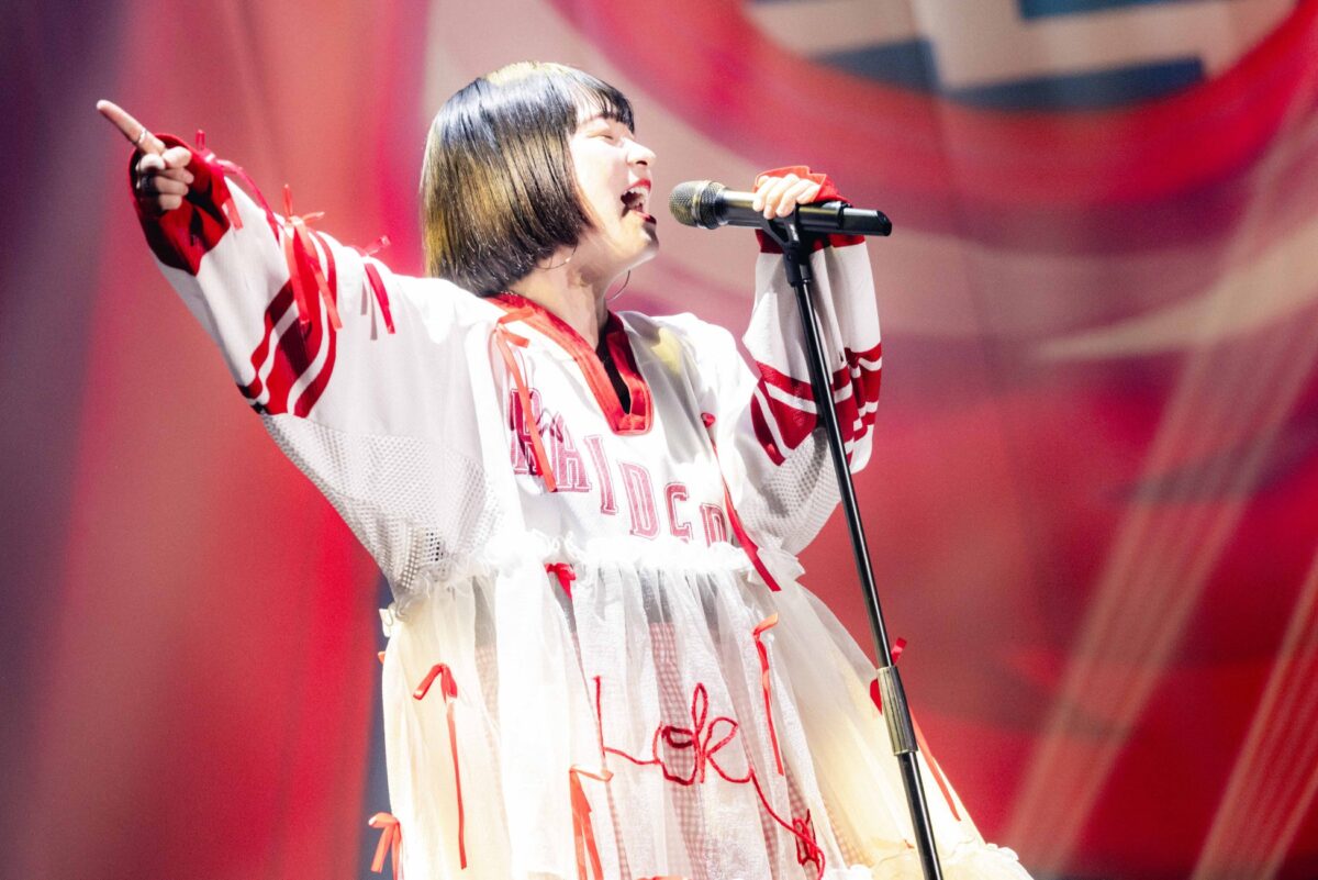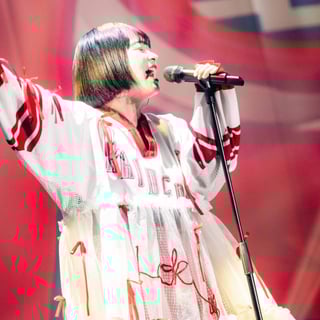 1時間の休憩を挟んで、スクリーンにKizunaAIが登場すると、静かなどよめきが広がる。今年2月に活動を再開した彼女は、新曲「ハンドサイン」「おまじない」を含む6曲を披露し、ARやレーザーを用いた映像演出とともに、バーチャルならではの世界観を見せる。スクリーンに向かって手を振る観客の姿もあり、KizunaAIの存在が確かに“今ここにある”と感じられるひとときだった。