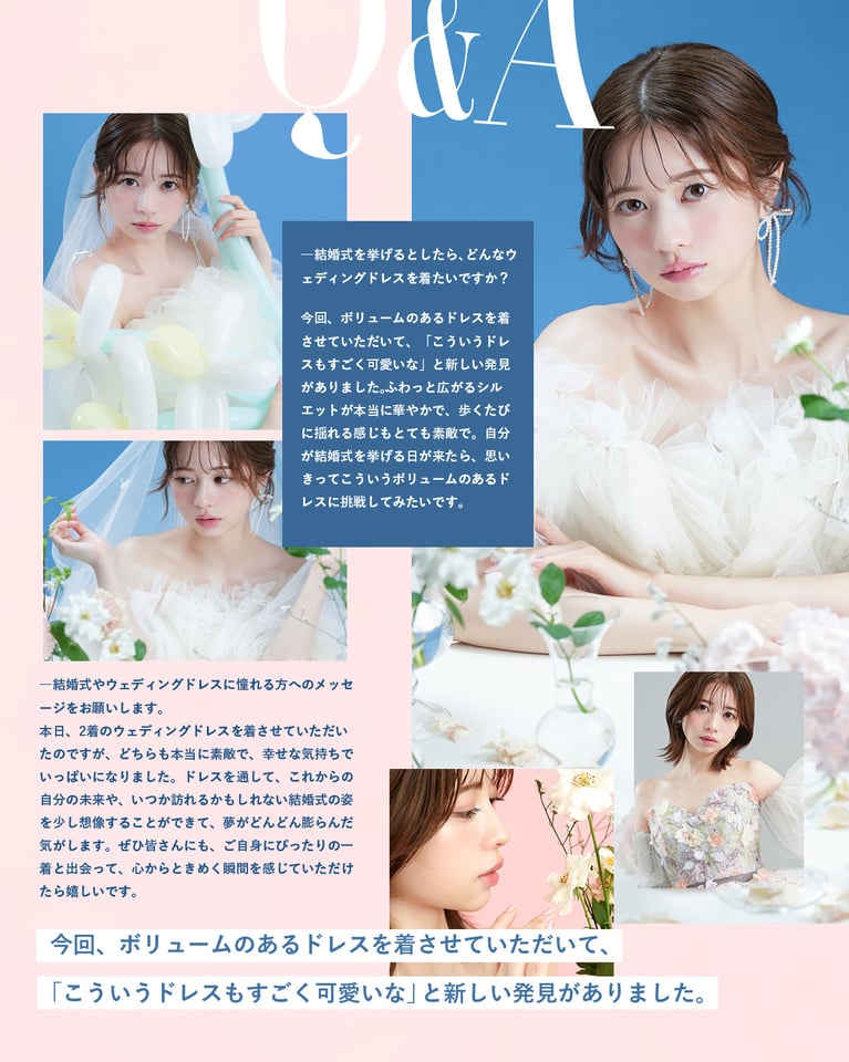 着用したコーディネートのポイントやウェディングドレスの魅力についても語っている。