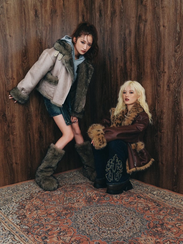今シーズン注目のリバーシブルフェイクファーブルゾンは、この冬マストで取り入れたいイチオシアイテム。レトロなムードを演出するフラワー柄トップスや、腰回りのさりげない肌見せなど、『EVRIS』らしさが光るスタイリングにも注目してほしい。