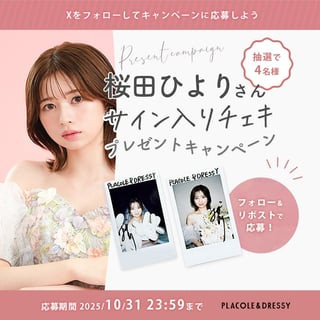桜田ひよりの直筆サイン入りチェキプレゼントキャンペーンを実施。InstagramまたはXそれぞれにて該当投稿をいいね&コメントまたはフォロー&リポストで応募。抽選で直筆サイン入りチェキカードを4名にプレゼントする。
