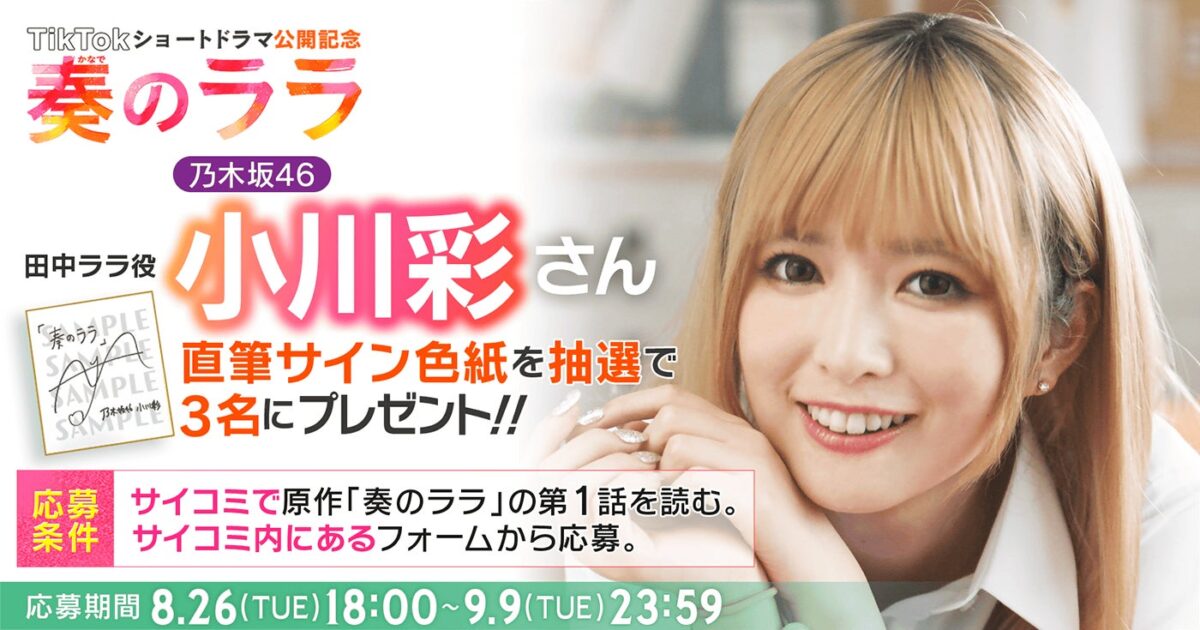 『奏のララ』の実写縦型ショートドラマ配信を記念して、乃木坂46 小川彩の直筆サイン色紙が抽選で3名に当たるキャンペーンを、『サイコミ』内で開催。