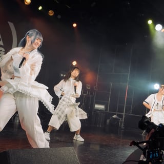 グループのライブの先陣を切るのはアプガ(仮)。青柳、北川、石川、小野田、松永のメンバー5人は色鮮やかな新衣装に身を包み、新体制アプガ(仮)を見せつけるべくパワー全開で「アッパーレー」を披露。気合いの入ったパフォーマンスで、LIQUIDROOMは早くも激アツ空間へ。「バレバレI LOVE YOU」で可愛い姿を見せたアプガ(仮)は、「愛愛ファイヤー!!」で情熱的な歌とダンスを見せ観客のボルテージをさらにアップさせる。
