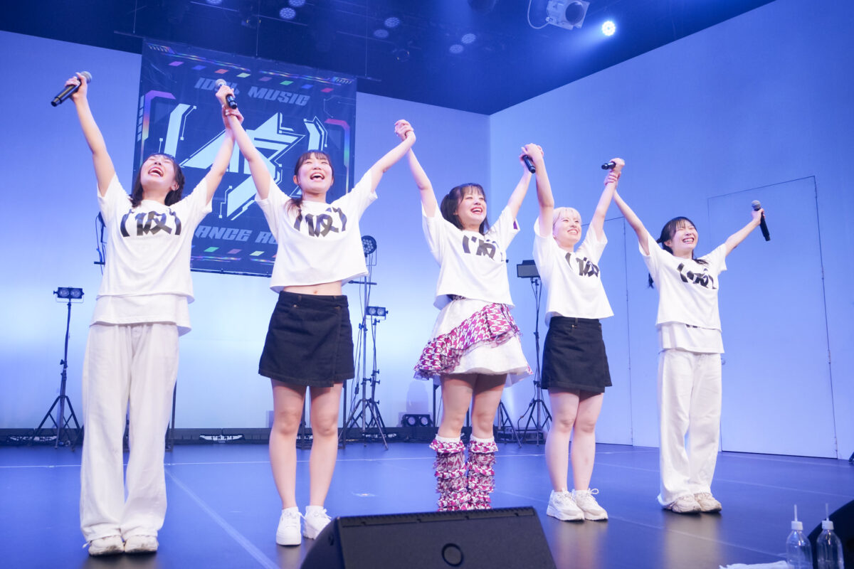 青柳が“いざこの5人でステージに立ってみたら、もうホントに頼もしくて。この5人ででっかい夢を掲げて突っ走っていきたいなって思いました! 頑張りましょう!”とやる気に満ちた声を上げる。