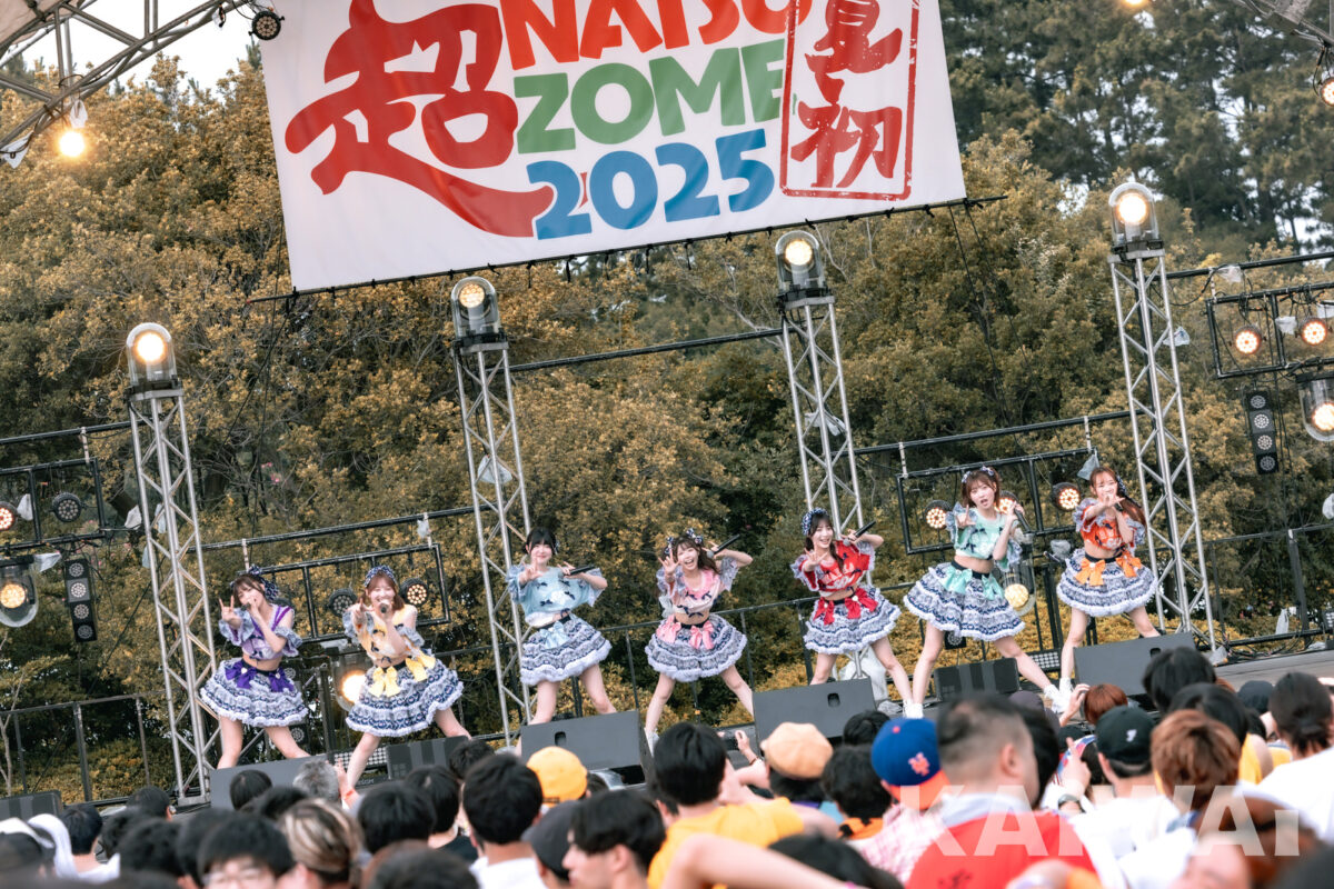 大型アイドルイベント『超NATSUZOME2025』が、7月5日(土)、6日(日)に幕張海浜公園Gブロックにて開催された。本イベントには、2日間で述べ200組を超えるアイドルグループが出演。真夏の野外ステージで大熱狂の空間を作り上げた。本稿は、7月5日(土)の「超ステージ」に登場したfav meのライブレポートとなる。