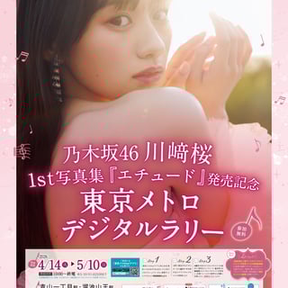 アイドルグループ・乃木坂46の川﨑桜の1st写真集『エチュード』(2026年4月14日発売/新潮社)の発売を記念して、東京メトロとコラボレーションした<東京メトロデジタルラリー>が実施される。期間は写真集発売日である2026年4月14日(火)から2026年5月10日(日)まで。