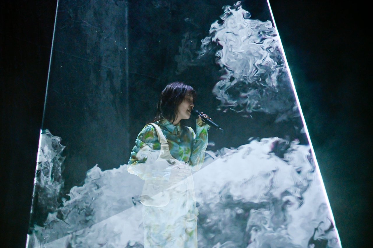 ライブ後半戦は「遣らずの雨」からスタート。続けて「MAYBLUES」「浮遊」を披露すると、穏やかで心地のよいサウンドと照明が会場を包み込み、先ほどの熱気とは対照的にゆったりとした時間が流れた。心の奥底から溢れる想いを表現した楽曲「それでも」、感情を燃え上がらせるような楽曲「熾火」を披露し、フロアには再び熱気と高揚感が満ちていった。続いてアコースティックギターを抱えた楠木ともりがブルーのレーザーに照らされ「turquoise blue」をアコースティックバージョンで披露すると、会場からは暖かい拍手が沸き起こった。